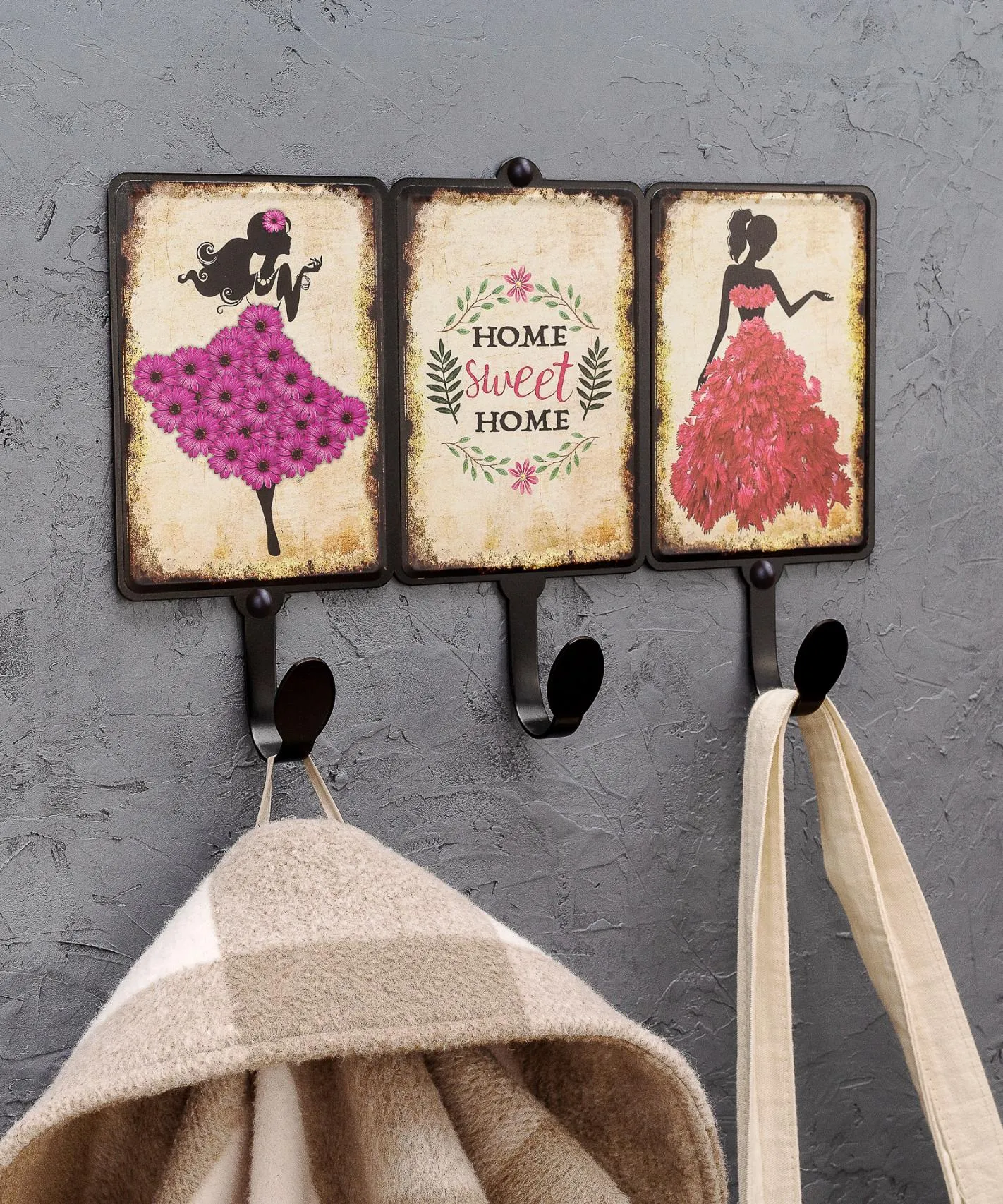 Вешалка декоративная «Модницы» VL014-BY — настенная металлическая вешалка с декоративным рисунком.